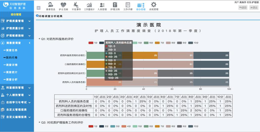 天坦按照國際JCI標(biāo)準(zhǔn)和HIMSS 7級標(biāo)準(zhǔn),將護(hù)理管理關(guān)注點進(jìn)行梳理、歸納、整合,將住院病房、護(hù)士工作站、護(hù)理部、醫(yī)院信息系統(tǒng)4大場景互聯(lián)互通,實現(xiàn)數(shù)據(jù)傳輸及時性、準(zhǔn)確性,利用對各項數(shù)據(jù)的挖掘,生成各種統(tǒng)計報表,為管理者提供科學(xué)分析決策,形成一套安全、有效、完整、流暢的管理系統(tǒng)。